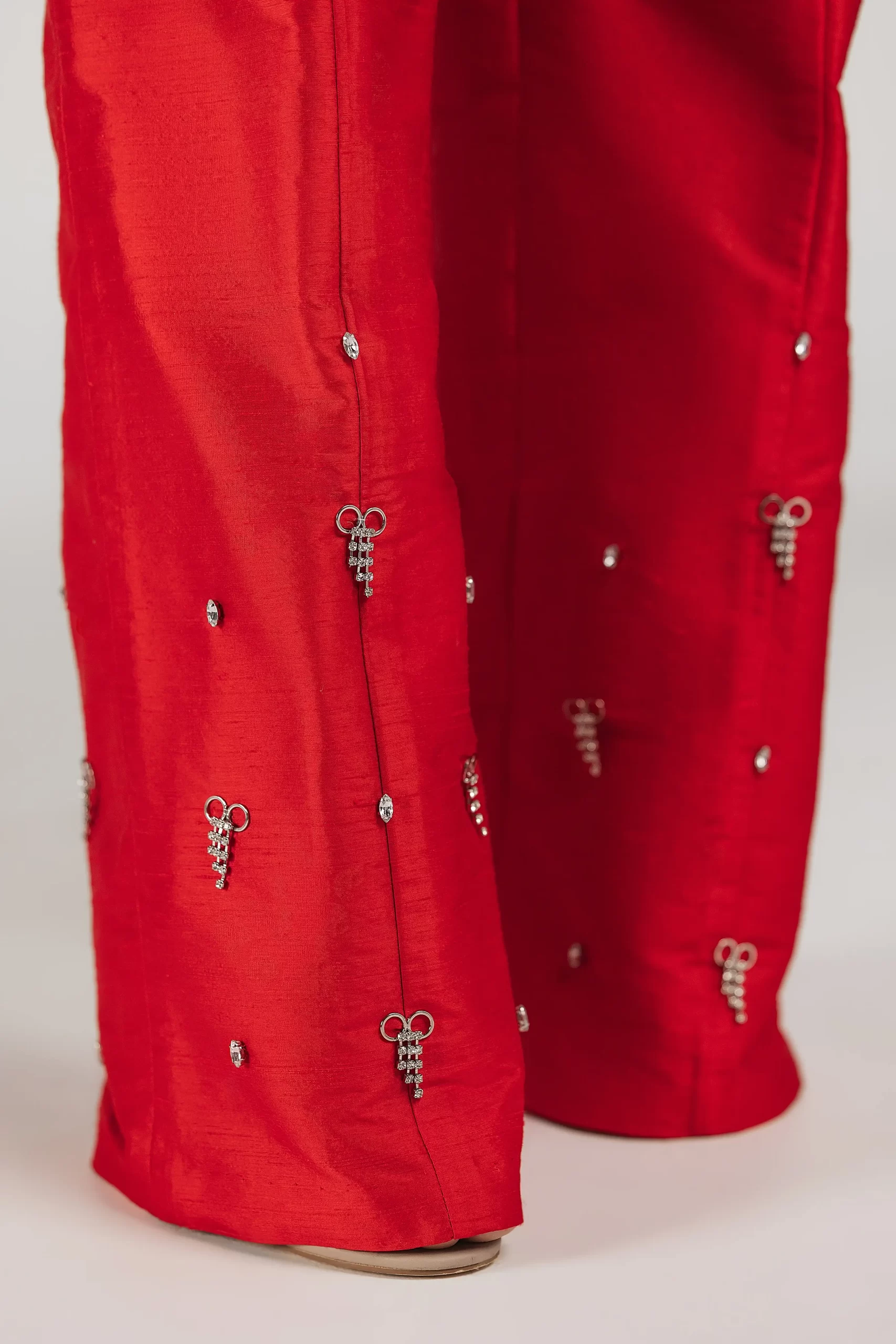 Pant: High waist, Loose, FulL Length, Pant, Hand Embroidery with beads, Side seam concealed zip
